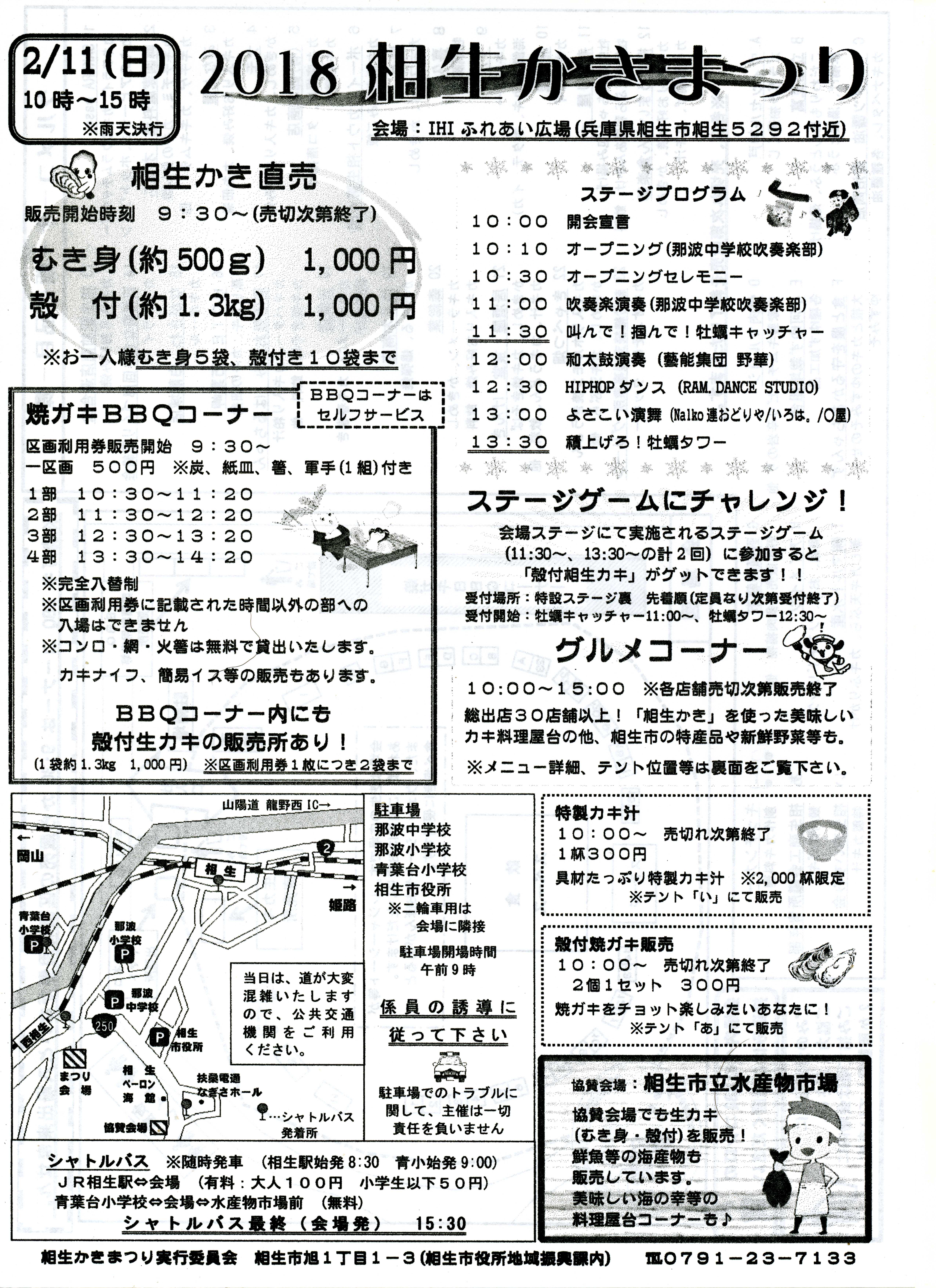 広報あいおい、2枚目のチラシは「2018相生かきまつり」