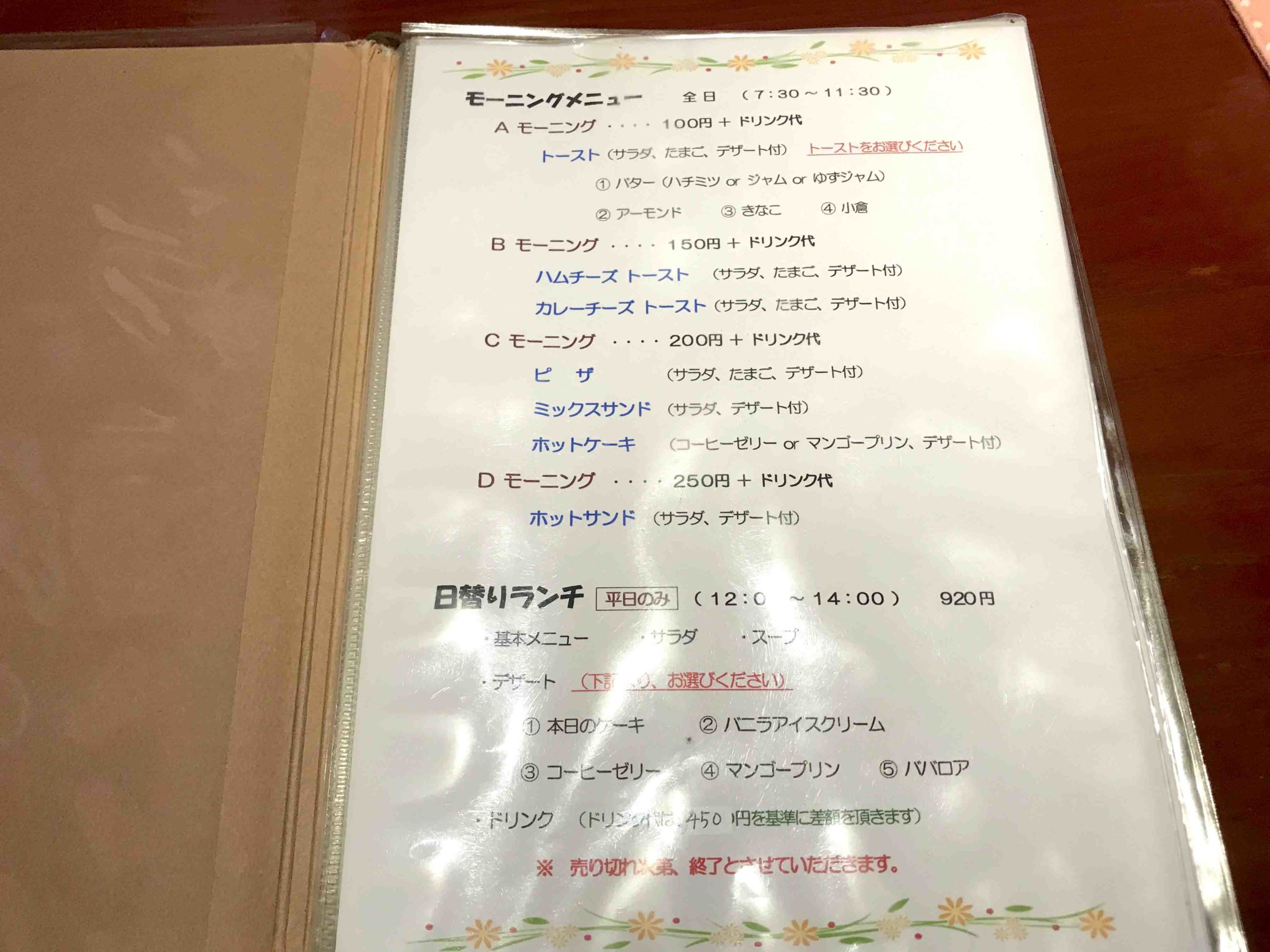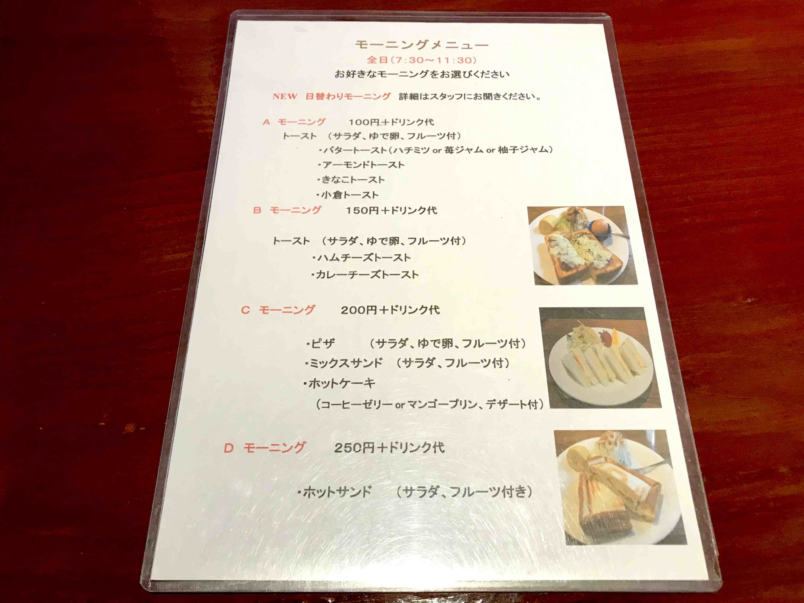 ここのモーニングはサービスは無く、追加のモーニングがA~Dの4種類。