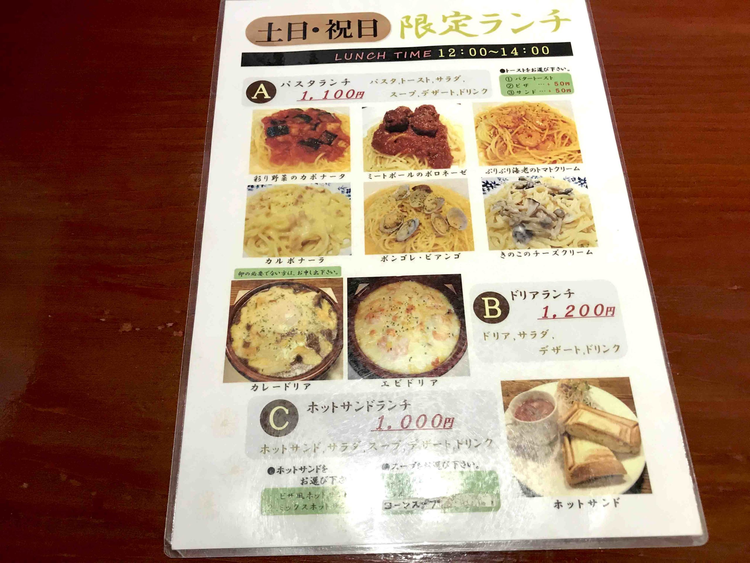 その他のメニューはこちら。土日限定のパスタ行ってみたいなー。