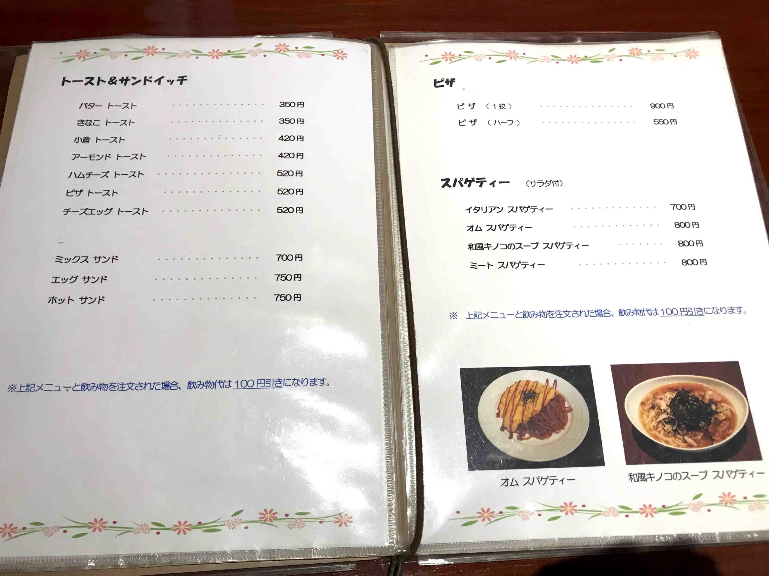 トーストやピザ、ミックスサンド、ホットケーキ、ホットサンドなどが選べる。