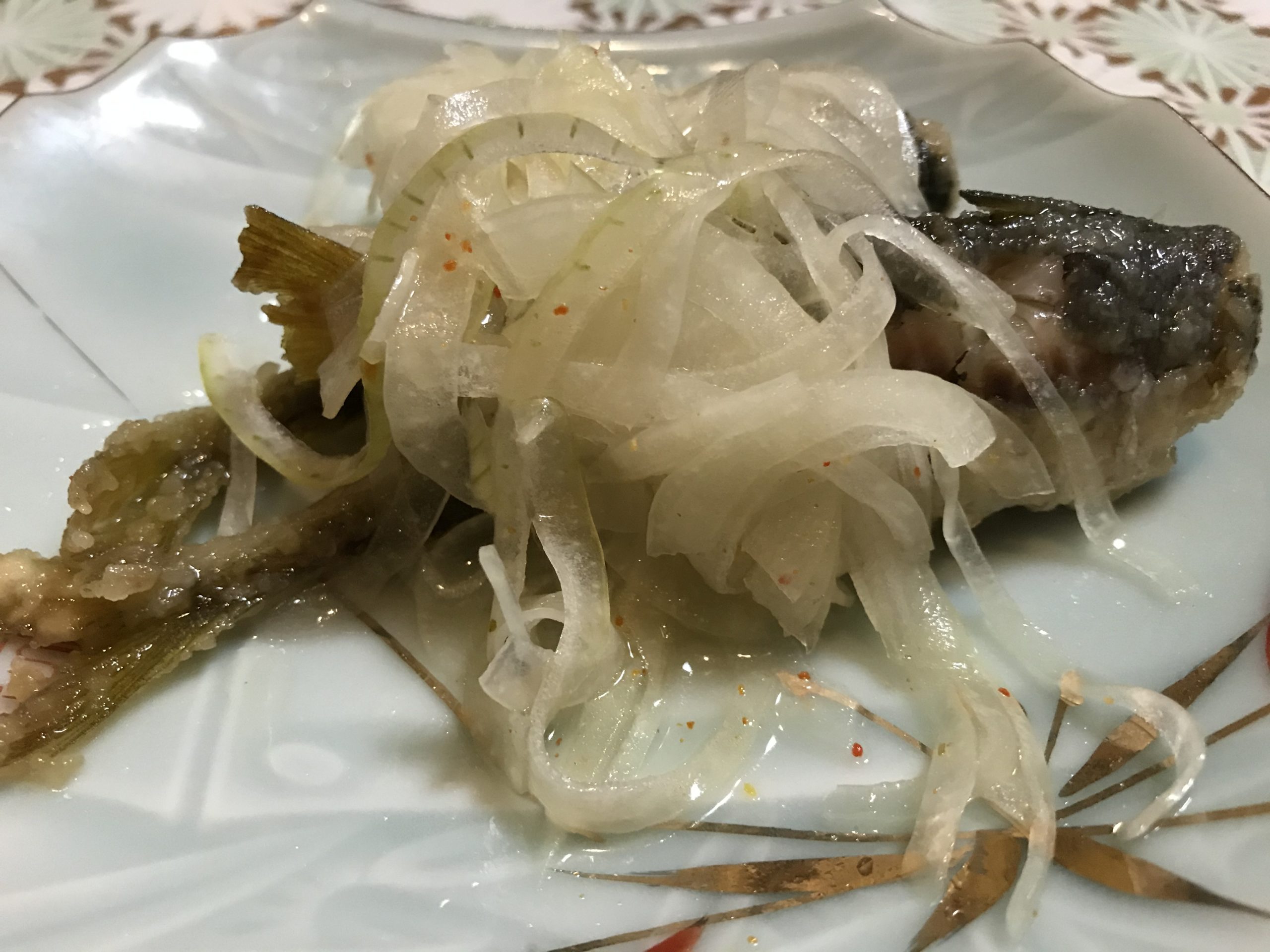 突き出しはお客さんが釣ってこられたという、イワシのお酢煮というんだろうか?美味くて子どもたちが取り合いしてる所を見て、サービスで追加して下さった。