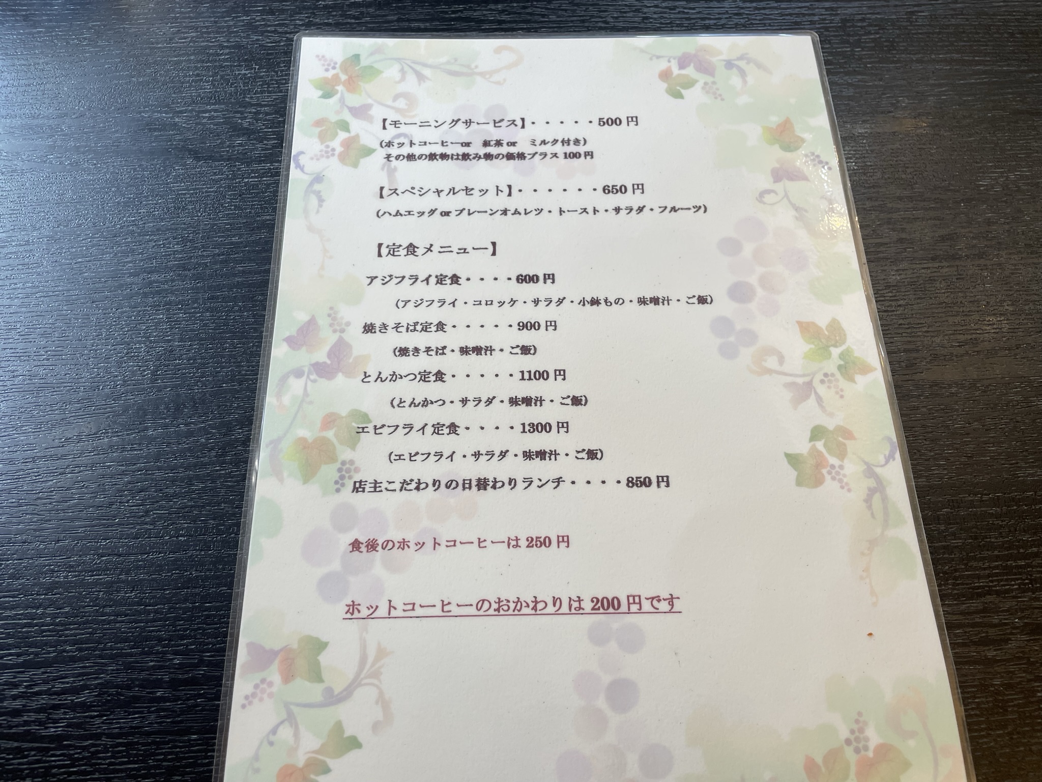 メニューをみながら、やっぱり最近は田舎の喫茶店でも定食の値段が高いと感じるのは僕だけだろうか。