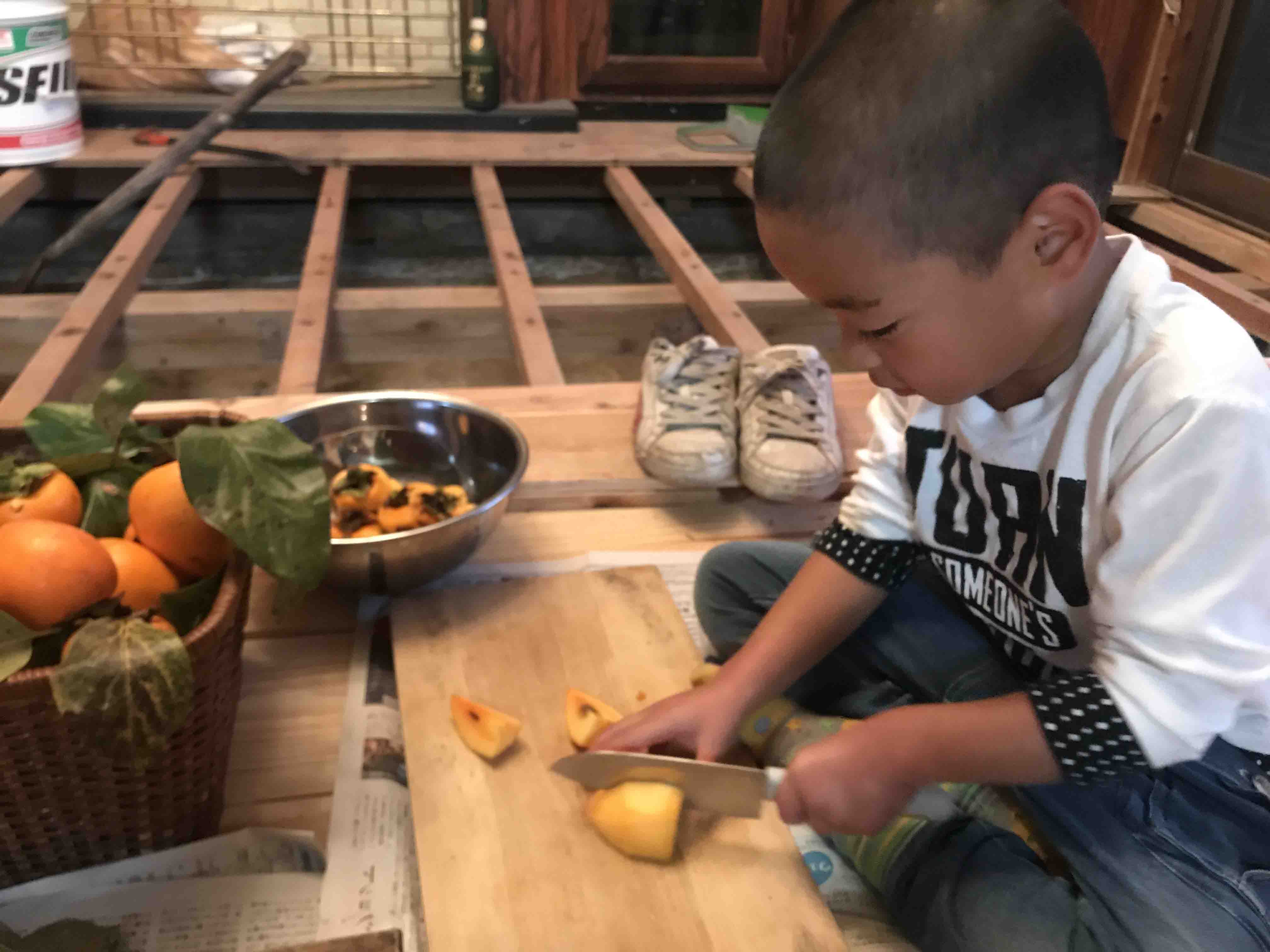 柿酢の柿を切るのは、子どもたちも手伝ってくれた。