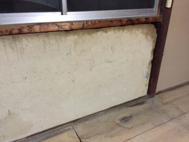 荷物を減らしてみて、色々補修すべき箇所が見えてきた。まず2階から壁。土壁の角に完全に穴が開いていた。全体的にもボロボロと剥がれているので、壁塗り補修が必要だった。ついでに1階の納戸の中の土壁も壁塗りを行うことにした。夏に向けて網戸も張替え。そして和室以外のフロア部分がベニヤが剥がれたり、浮いたりぼこぼこしている。これを全面的に張り替えることにした。