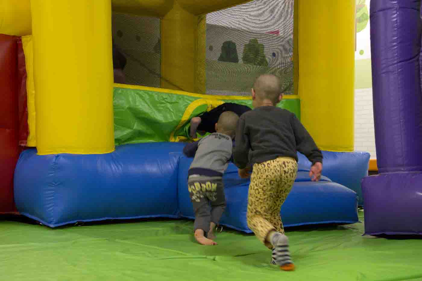 そして平日だから空いてるかと思っていたが、やっぱり春休みのせいか?いっぱいじゃないか。それでも少しだけ席が空いてたので入って遊ばせたら、まあ楽しそうにぎゃーぎゃーぎゃーぎゃー遊んでくれた。