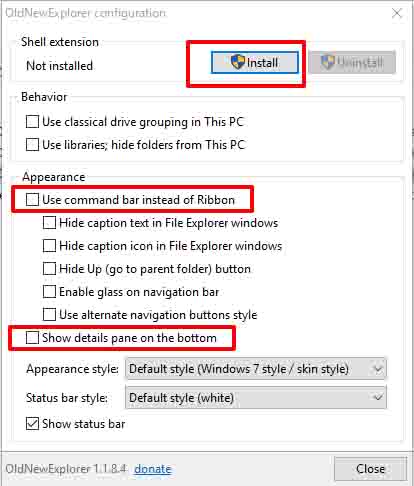 後は、「Use command bar insted of Ribbon」にチェックを入れるとフォルダ上部のリボンが表示される。