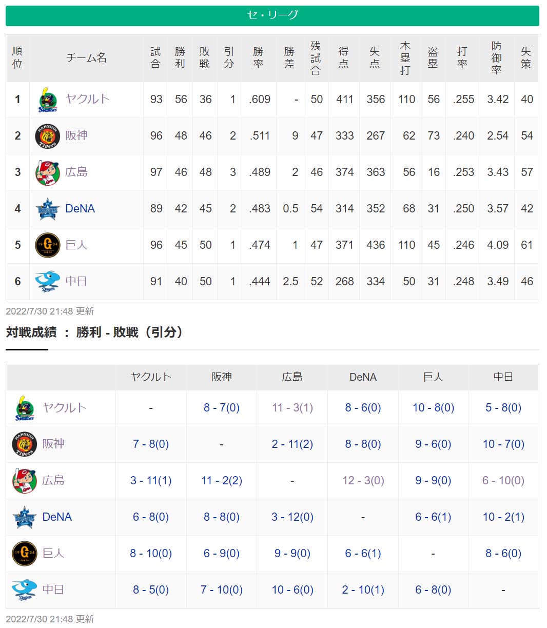 ヤクルトは阪神に負けたが、11ゲーム差は1ミリも埋まらず、それよりも2位阪神に2ゲーム離され、さらに4位DeNAには0.5ゲーム差まで詰まった。