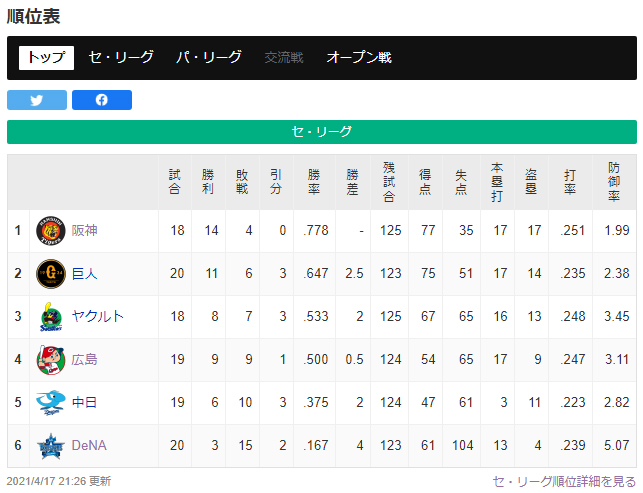 <中日ー広島 5回戦>◇2021年4月17日土曜日 バンテリンドーム