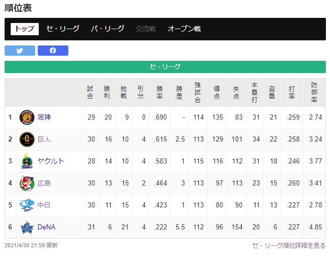 <阪神ー広島 6回戦>◇2021年4月30日・金曜日 甲子園球場