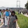 喜んだ子どもたちは、日曜日の朝からさっそくスイカ割り。