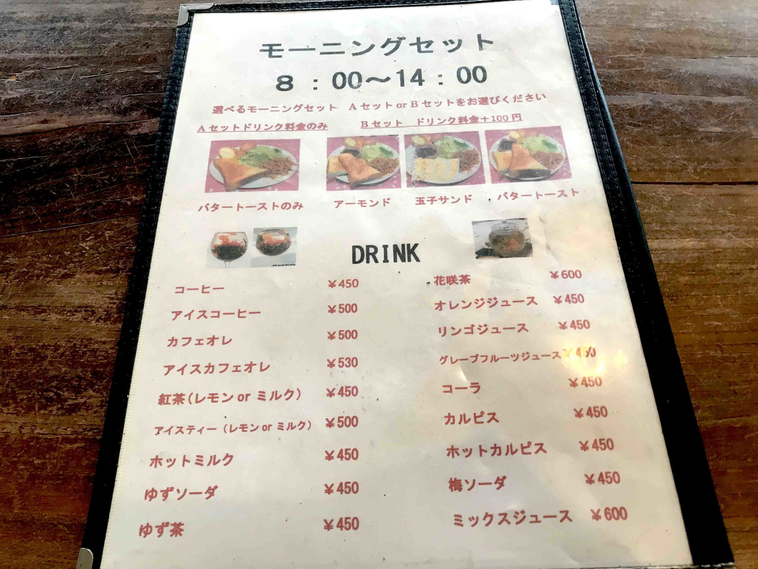 福崎町のパチンコタイガーの前。一姫ラーメンの並びの一番南のお店「ゆず」 ここのお店のモーニングはサービスのAセットと+100円のBセットが選べる。